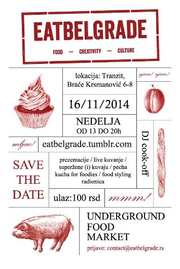 Počevši od sledećeg izdanja Eat Belgrade koje se planira za 14. decembar, biće organizovan i tzv. Undeground Food Market, jedinstvena mala pijaca na kojoj će biti predstavljeni najbolji mali proizvođači vrhunske hrane, koji načinom uzgoja hrane oživljavaju ideju održivog razvoja i specijalnu pažnju posvećuju kvalitetu svojih proizvoda.