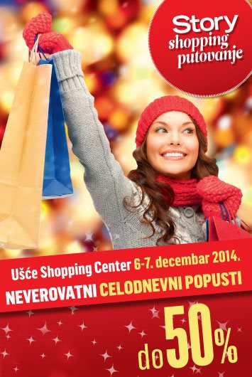 Za sve kupoholičare, magazin Story organizuje 6. i 7. decembra Story shopping putovanje u UŠĆE Shopping centru. Pored celodnevnih popusta, posetioci će imati priliku da vide zanimljiv zabavni program i druže se sa omiljenim poznatim ličnostima. Oba dana, u subotu i nedelju, delimo čak 1.000 poklona za sve one koji dođu do Story promo pulta i odgovore na kratka kviz pitanja.