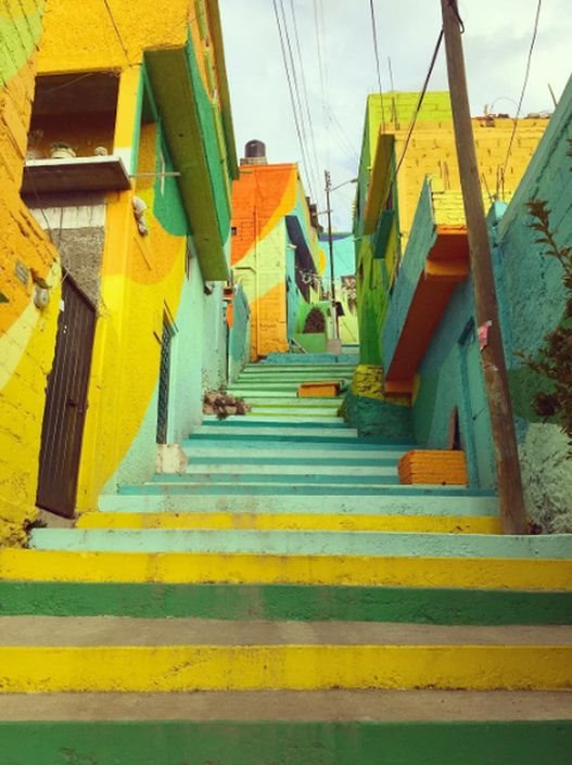 Priča o Las Palmitasu, siromašnom naselju koji se nalazi na dva sata udaljenosti od Meksiko Sitija, je poprilično neobična. Samo prošle godine, meksička vlada je sponzorisala urbani projekat renovacije kako bi pretvorila ovaj kraj u street art. Kao rezulat, oko 2000 kuća su pretvorene u javno umentično delo.