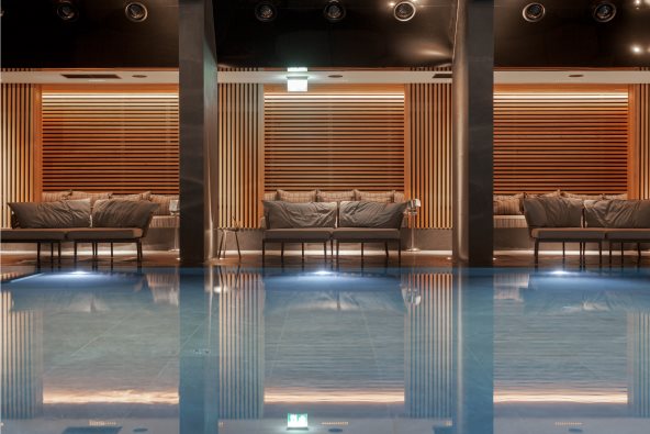 Luksuzno opremljen prostor na 2000 kvadratnih metara sa lakoćom osvaja i opušta posetioce već pri prvom susretu. Impresivni zatvoreni i otvoreni bazeni sa prirodnim organskim zelenim zidom i pogledom na planinske vrhove upotpunjeni su termalnom zonom sa raznovrsnim sadržajima. Bio sauna sa borovim iglicama i sušenim cvećem sa obronaka Kopaonika omogućuje jedinstveni doživljaj relaksacije uz bogate arome iz prirode Kopaonika. Infra-red sauna, sa nešto nižom temperaturom i slanim zidom od himalajske soli osmišljena je tako da njene blagodeti mogu da koriste i deca koja imaju probleme sa disajnim putevima. Pored finske saune očekuje vas i lava sauna, namenjena parovima. Posebni dizajnirano, parno kupatilo obogaćeno je gorskim kristalima, dok Rasul besprekorno detoksikuje i relaksira, kako mišićni sistem, tako i disajni, ujedno negujući kožu.