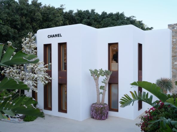 Glamur prikladan za život na ostrvu mogao bi da bude najkraći opis sezonskog Chanel butika na ovoj prestižnoj grčkoj lokaxciji. Butik se prostire na 142 četvorna metra na dva nivoa, otelotvorujući kultnu kikladsku arhitekturu svojim kubičnim dizajnom i belim zidovima. Kako i priliči ambijentu, udobno nameštene terase pozivaju goste na opuštanje dok biraju novosezonsku kolekciju, sunčane naočare, mirise iz linije LES EAUX DE CHANEL, inspiriranom mestima značajnima Gabrielle Chanel, te predmete iz kolekcija Chanel Coco Beach 2024.