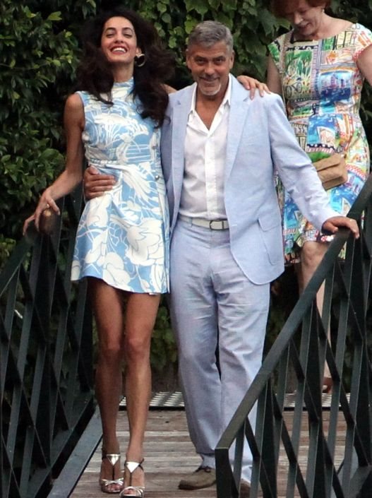 Amal je bila više nego atraktivna dok je kraj Georgea blistala u plavo-beloj koktel haljini s potpisom Miu Miu, cvetnog printa koju je nadogradila srebrnim, metalik Pradinim sandalama. Vitka crnka je izgledala kao italijanska glumica iz šezdesetih.