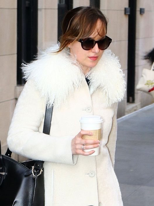 Za opuštenu šetnju Njujorkom, Dakota je odabrala skinny crne farmerke i čizme preko kolena koje su izdužile njenu figuru.Posebno smo se oduševili savršenim belim kaputom sa okovratnikom od veštačkog krzna koji su mnogi okarakterisali kao odličan winter white komad.