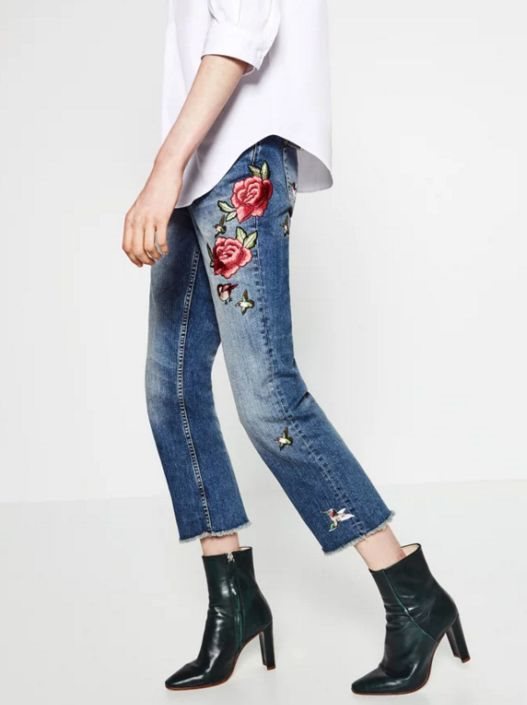 Ok, složićemo se da farmerke sa vezom nisu nešto novo i neviđeno do sada, ali svaka sezona nam donosi neku drugačiju verziju postojećeg trenda. Veoma ženstvene, ukrašene ružama u jarkim bojama, ovaj model jeansa dodaje dozu razagranosti vašem looku, što će činiti vaš look efektnim.