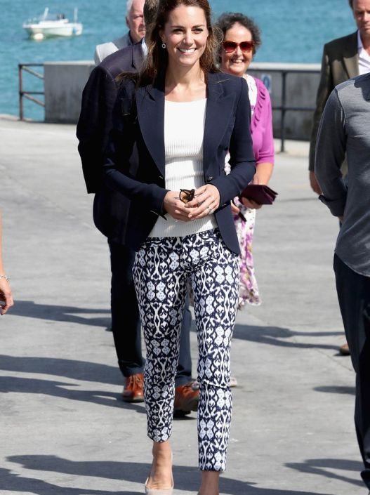 Ne mareći za komentare i sugestije da žena iz kraljevske porodice stalno mora da bude u uštogljenim svečanim toaletama, Kate je uživala u svojoj udobnoj kombinaciji koju su sačinjavale pomenute helanke, bela majica, teget sako i udobne cipele sa platformom, zbog kojih vojvotkinja konstantno ratuje sa kraljicom Elizabetom.