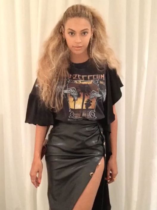 Zajedno sa ovim odevnim komadima, Queen B je iskombinovala sandale sa visokom štiklom koje su u velikoj meri izdužile njenu figuru i dodale dozu glamurozonosti koja se mešala sa rock vajbom.
