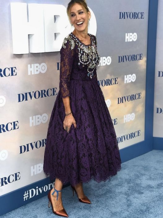 Kada su u pitanju garderoberi poznatih, moramo da priznamo kako nismo baš sigurni u čiji bismo pre voleli da "uđemo" - od Carrie Bradshaw ili SJP. Nakon što smo glumicu videli u prelepoj ljubičastoj haljini na premijeri HBO serije "Divorce" koja ima princess kroj i raskošan svetlucavi cvetni vez sačinjen od bisera, perlica i sitnih kristala u raznim bojama, nekako više naginjemo ka SJP.