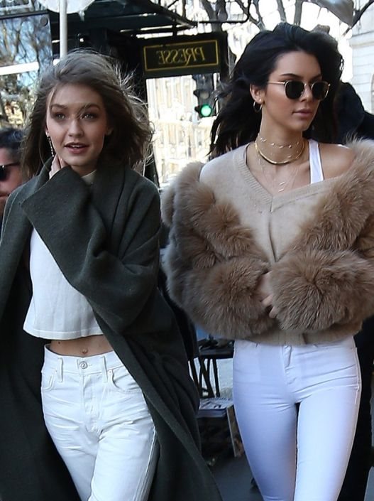 Za razliku od nje, Kendall je ostala verna svojim skinny pantalonama u beloj boji koje su odlično izgledale sa bež džemperom i gležnjačama sa šnirom. Po ugledu na svoju drugaricu, ona je svoj stajling začinila trendi bundicom od krzna.