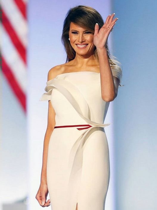 Dok je na samoj inauguraciji blistala u izdanju nalik onom koji je krasio Jackie O, na inauguracijskom balu Melania je mamila poglede u dugoj večernjoj haljini boje slonovače, podsetivši nas na jednu drugu sofisticiranu Prvu damu - Nancy Reagan.