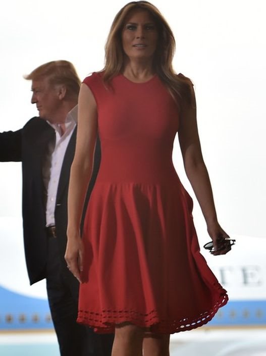 U vatrenocrvenoj Alexander McQueen haljini vrednoj 2.200 dolara, odgovarajućim crvenim Louboutin salonkama "teškim" 600 dolara, prva dama Amerike ostavila je moćan utisak na Amerikance.