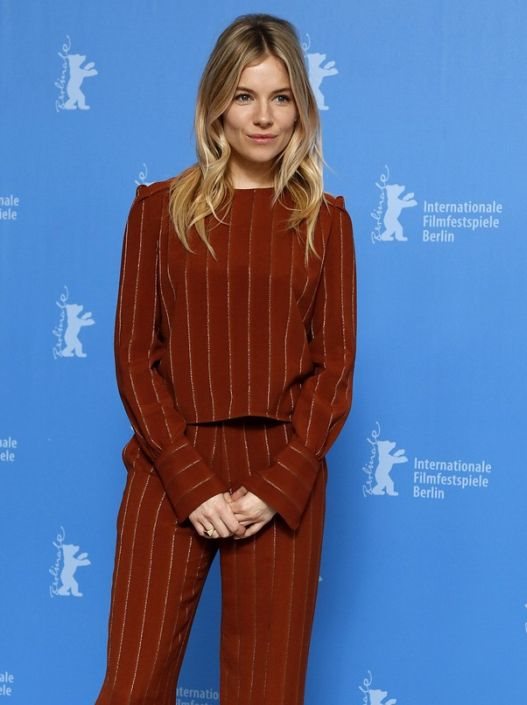 Tako je Sienna za ovu priliku odabrala smeđi komplet sa sjajnim prugicama koje su unele dašak glamura u outfit. Retro komplet glumica je upotpunila fantastičnim žutim cipelama koje pažnju privlače svojom neobičnom petom u obliku kugle – pravi eye catcher!