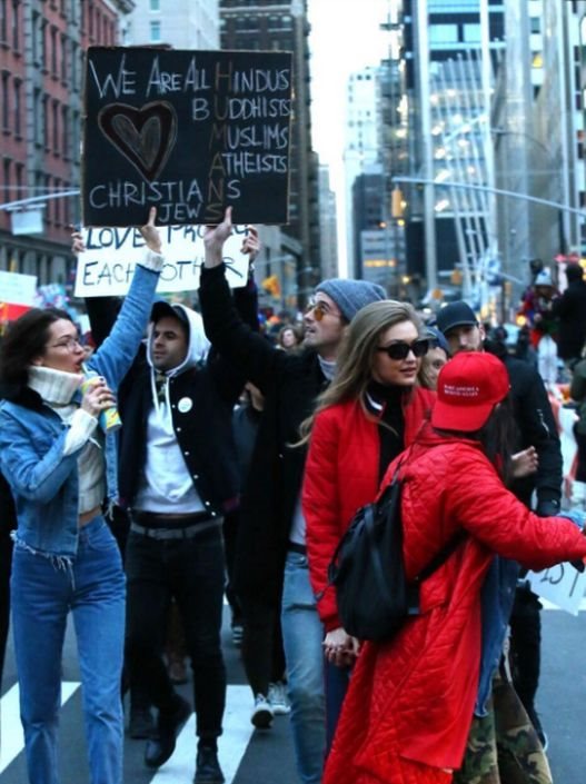 Hiljade ljudi je izašlo na ulice da protestuje protiv ove kontroverzne odluke. Među njima je bila i manekenka iz slavne Hadid porodice. Bella je zajedno sa sestrom Gigi i drugim poznatim prijateljima prošetala u povorci No Ban No Wall koja je održana u Njujorku.