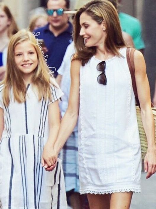 Za potrebe snimanja drugog porodičnog portreta tokom tradicionalnog letovanja na Majorci, kraljica Letizia odabrala je belu pamučnu kratku haljinu s potpisom španskog dizajnera Alfonsa Domingueza. Zanimljvo je da je ovu haljinu prvi put obukla na letovanju još 2011. godine, dok je ravne sandale s kristalićima brenda Uterque prvi put nosila tokom letovanja 2013. godine.