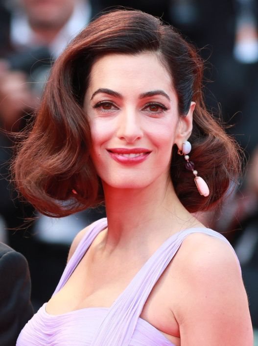 Naime, njena kosa je bila vidno kraća, blago natapirana i uvijena u elegantne, krupne talase koji su povečali volumen njene kestenjaste kose. Ispod bujne kose virile su viseće minđuše, jedini nakit koji je Amal izabrala za ovo veče.