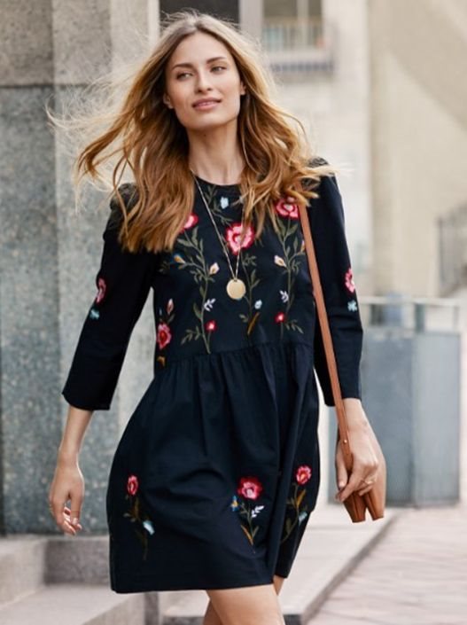 Lindex predstavlja ovaj spoj u formi klasične male crne haljine ukrašene floralnim detaljima.
