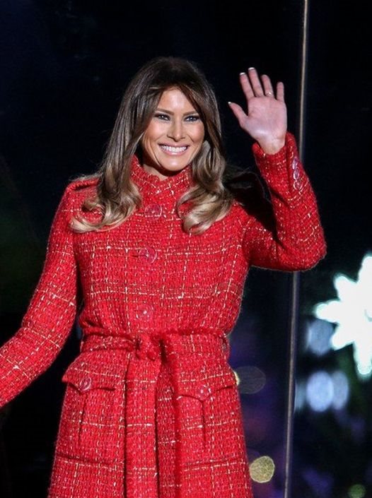 Ove godine Melanija je oduševila kaputom cenjene modne kuće Chanel. Ispod modela u omiljenoj prazničnoj boji, crvenoj, koji se u struku veže kaišem i tako stvara vrlo elegantnu i ženstvenu siluetu, nazirala se crvena haljina.