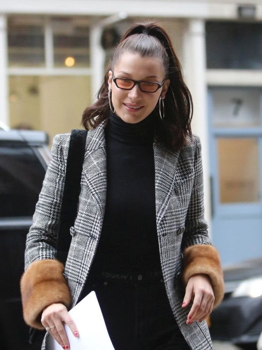 Crna rolka, farmerice na visoku struk i čizmice su omiljena i udobna zimska kombinacija, dok je Fendi kariran kaputić luksuzan ladylike komad kojim je Bella kompletan look podigla na jedan viši nivo učinivši da ovaj zimski look izgleda nekako otmeno i uglađeno.