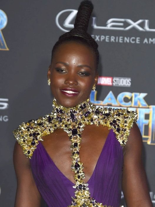 Ipak našu pažnju je više privukla Lupita koja je blistala u custom-made ljubičastoj haljini Atelier Versacea dubokog dekoltea sa zlatnim otvorenom harness korsetom koji je bio tako skrojen da je pokrio samo struk, ramena i vrat lepe glumice.