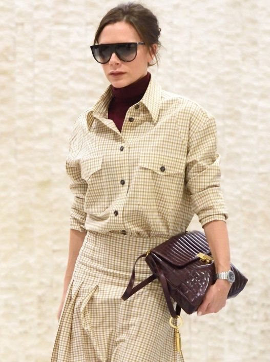 42-godišnja kreatorka je na njujorškom JFK aerodromu opet demonstrirala svoje umeće da aerodrom pretvori u pistu. Njen siguran hod ispratila je horda fotografa koja je Victoriju uslikala u njenom bež karo modelu koji se sastoji od košulje i midi suknje s blagim faltama.