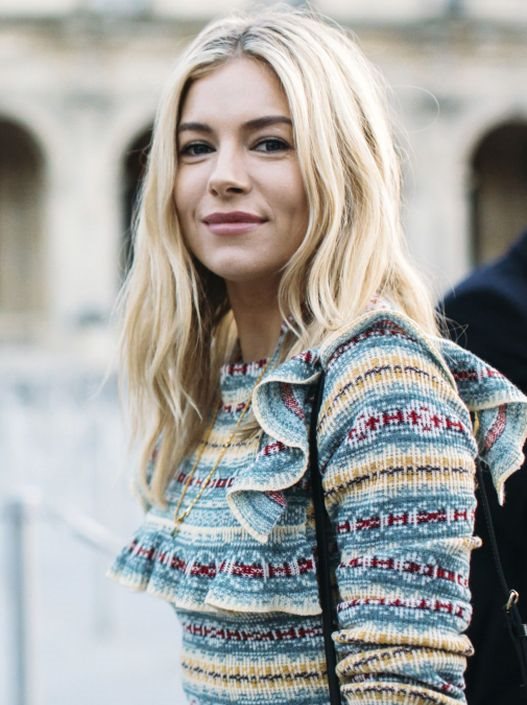 Miller je ipak briljirala za nijansu više odevena u jeans klasičnog teksasa sa ravnim nogavicama, malo dubljeg struka u koji je upasala zanimljiv, malo tanji džemper sa karnerima u predelu grudi, potpuno zatvorenog dekoltea koji se odlikovao prugastim tkanjem u nijasama limun žute, crvene i sivkastoplave boje.