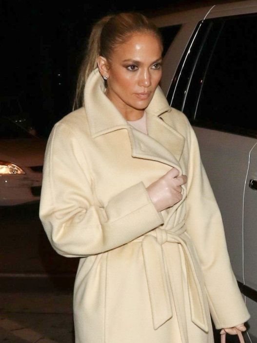 Bež, nežni kaput naglašenih revera strukiran kaišem J.Lo je nadogradila klasičnim aksesoarima koji su nas podsetili na odevne izbore glumica Ave Gardner ili Rite Hayworth.