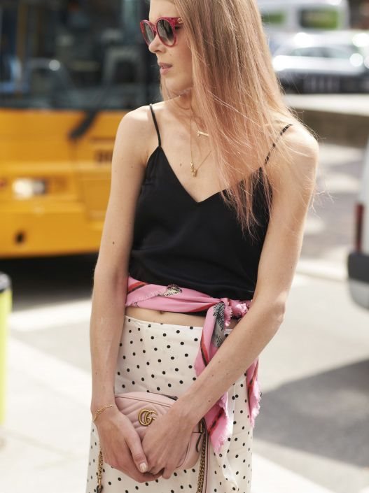 Večan dezen tokom proleća dobija poseban tretman, cvetajući na svilenim bluzama, lepršavim suknjama i cigaret pantalonama! Mi vam savetujemo da potražite slip haljinu sa krupnim tufnicama koju možete nositi uz starke i mules sandale.