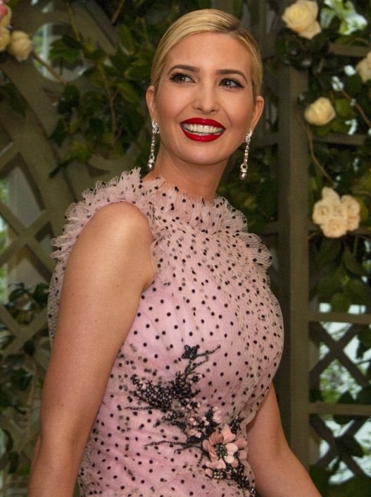 Svoju toaletu u stilu princeza, Ivanka je zaokružila niskom punđicom i crvenim karminom koji je pun beauty pogodak.