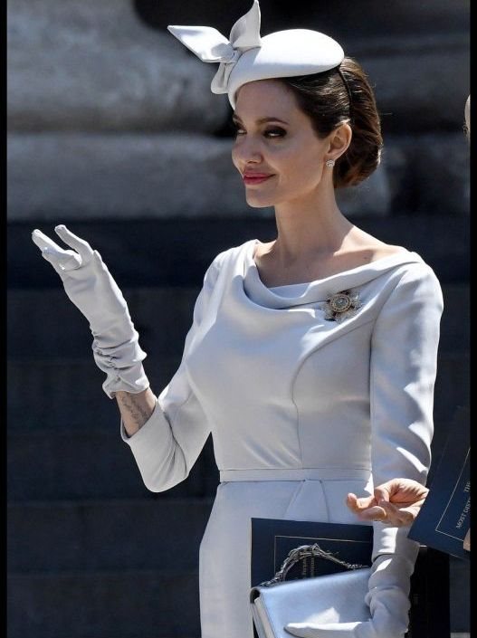 Angelina je uspela da ukrade pažnju svih prisutnih izgledajući poput pripadnica britanske kraljevske porodice. Beličastokrem couture kostim sa pensil suknjom koji potpisuje britanska kuća Ralph & Russo istakao je vitku, mršavu figuru holivudske glumice koja je izgledala božanstveno, sveže i raspoloženo.