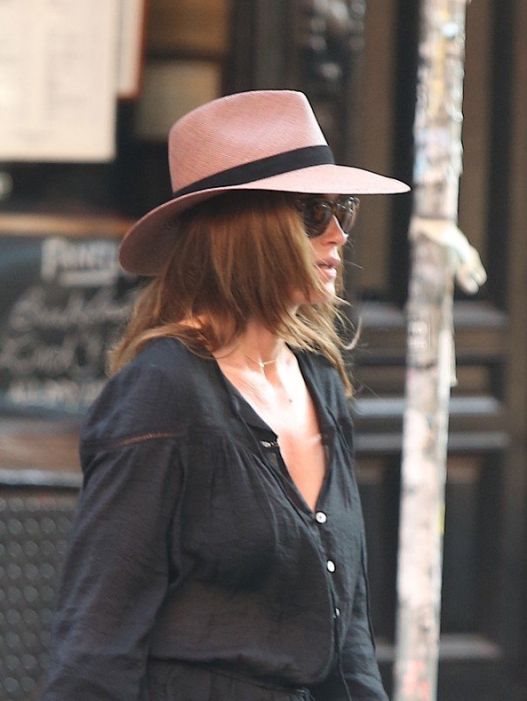 Veoma sveden letnji komad Crawford je nadogradila ravnim sandalama u zlatnoj boji, ružičastim šeširom i oversize naočarama i tako se maksimalno sakrila iza aksesaora.
