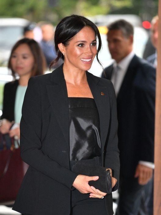 Ipak, Meghan je blistala u crnom, efektnom kompletu - sakou i pantalonama luksuznog brenda Altuzzara, klasičnog kroja. Stajling je dodatno nadograđan topom skandinavskog brenda Deitas, kao i tašnicom britanske dizajnerke Stelle McCartney.