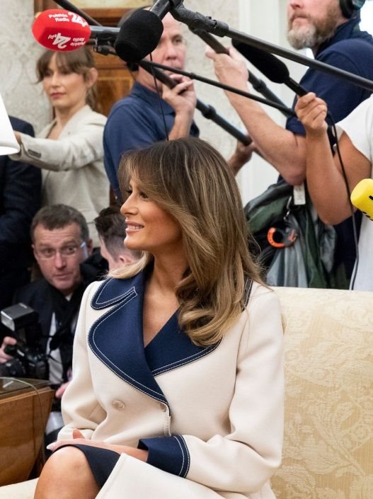 I ovaj put, prva dama je oduševila svojim modnim izborom. Nakon hrabrog odabira salonki sa leopard printom kada je kretala na svoju prvu samostalnu turneju, Melania se ovaj put odlučila takođe za životinjski dezen, ali ovaj put u ravnoj varijanti i sa motivima zmijske kože.