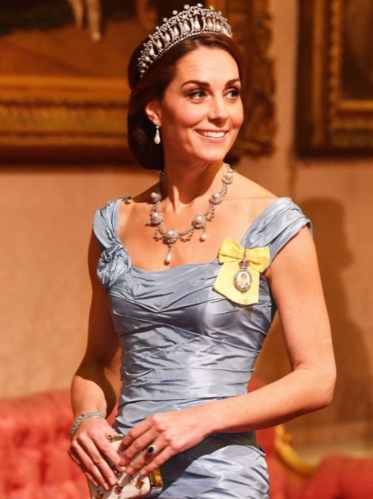 I ovog puta, bez izuzetka, Kate je izgledala prelepo u dugoj, svetloplavoj haljini, sirena kroja koji je bio veoma popularan tokom osamdesetih godina 20. veka.