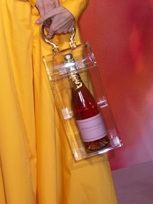 Poznata manekenka se na Business of Fashion 500 gala pojavila u haljini intenzivno žuto-narandžaste boje. Ali to nije bilo toliko važno, koliko je njena torbica skretala pažnju. Providna i sa metalnom ručkom, u sebi je imala samo bocu šampanjca.