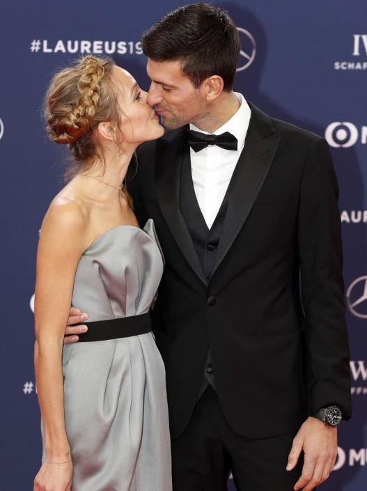 Novak je na dodelu došao u društvu supruge Jelene Đoković koja je zablistala u vrlo elegantnom izdanju. Ispod sive haljine golih ramena s visokim prorezom i crnim pojasom koju potpisuje Marija Tarlać, nosila je mrežaste crne čarape i mules štikle sa otvorenim prstima u istoj boji.