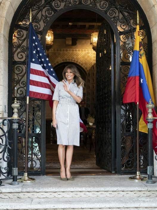 Te je još jednom oduševila javnost svojim modnim odabirom - prugastoj košulja-haljini koju je obukla za sastanak sa suprugom venecuelanskog predsednika, Fabianom Rosales, u rezidenciji Mar-a-Lago, piše Stil.