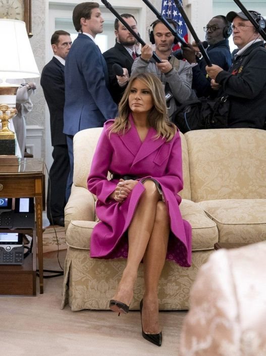 Naime, Melania je za ovu priliku obukla prelep model ružičastog Louis Vuitton kaputa, kojim je bilo nemoguće da se istakne.