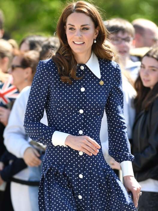Veoma uglađena sa zakopčanim dugmićima do vrha, ova haljina koju je Kate već nekoliko puta nosila, diskretno je odavala malo kože.