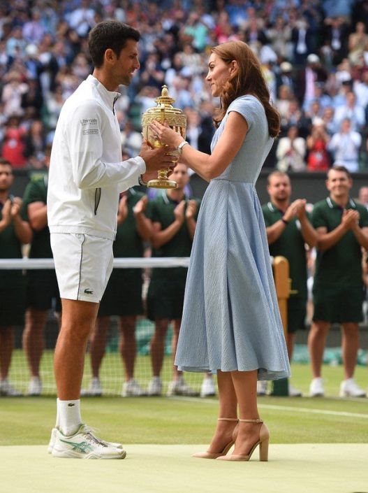 Za ovu specijalnu priliku uručivanja trofeja Vimbldona, vovotkinja od Kembridža izabrala je kako i dolikuje događaju, ali i njenom prepoznatljivom stilskom maniru, na prvi pogled jednostavnu, ali vrlo damsku haljinu.