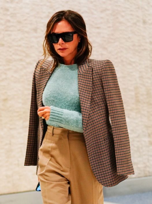 Razliku prave džemper i sako, ali Vicky i ovde igra mudro - tirkozno plava je u isto vreme vrlo efektna (odlično se uklapa sa neon tonom), dok je njen podton hladan, dakle sjajana kombinacija u sklopu sa sakoom i pnatalonama.