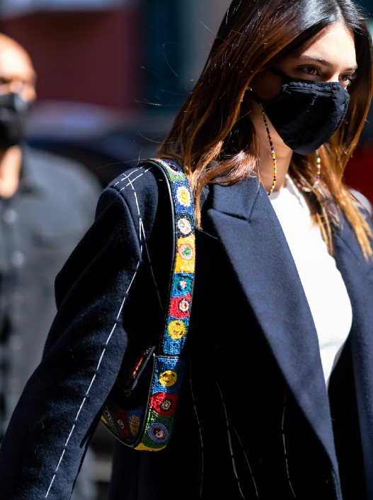 Kao prava trendseterka, Kendall Jenner je još prošle godine ponela svoju prvu Staud Tommy tašnu zebrastog printa, a sada je isti model ponela u drugačijem izdanju. U pitanju je Millefiori dezen, koji sasvim namerno podseća na onaj psihodeličan. Farmerke, bela majica i dugačak teget kaput za šetnju Njujorkom, zapečaćeni su živopisnim aksesoarom koji je čitav outfit podigao na viši nivo.