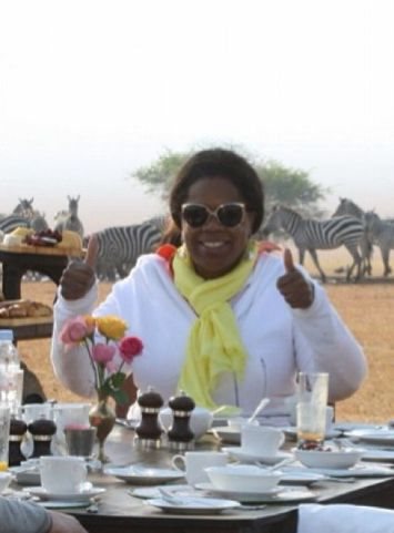 Par je na safariju u savanama Serengetija, a Oprah je putem društvenih mreža otrkila da je oduševljena divljim životinjama, što je i pokazala tako što je objavila fotografije geparda, žirafa, ali i jednu na kojoj doručkuje u neposrednoj blizini krda zebri.