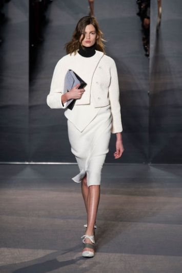 Sezona jesen/zima 2013/14 ne može da se zamisli bez elegantne i otmene bele. Od eterične večernje haljine Giambattista Vallija, preko modernog kostima Proenze Schouler, nijedna kombinacija nije toliko chic koliko ove kreacije u beloj! Foto:
