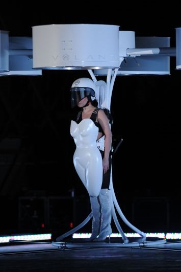 Haljina pod nazivom Transporter Volantis zapravo je mala letelica kojom se upravlja uz pomoć daljinskog upravljača, a poseduje šest propelera koji pokreću celu konstrukciju.