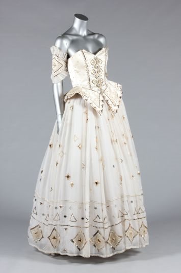 Haljina nije dizajnirana za princezu Dianu, ali ju je ona sama odabrala iz kolekcije Emanuels, para koji je dizajnirao i njenu venčanicu. Iz aukcijske kuće istakli su da je Diana haljinu nosila u nekoliko prilika, nakon čega je prodala da bi sakupila novac za svoje dobrotvorne akcije.