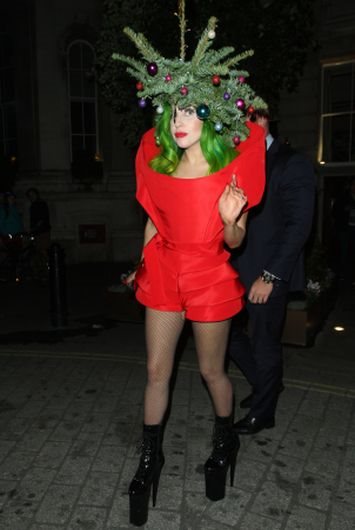 Upravo zbog toga malo ko se začudio kada se ekscentrična pevačica tokom ovog vikenda za jedno javno pojavljivanje odlučila za kostim novogodišnje jelke. Osim zelene perike i dodataka napravljenih od bora, uz vrtoglave štile Gaga je iskombinovala kratki kombinezon u crvenoj boji.