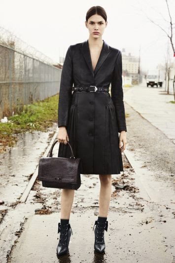 Givenchy je u novoj kolekciji ostao veran svojim idejama, fokusirajući se na uglađene komade strogih linija i laganu slojevitost. U Pre-fall kolekciji dominiraju avijatičarske jakne, dugi kaputi crne i kamel boje, kao i bluze od šifona i haljine sa cvetnim printom.