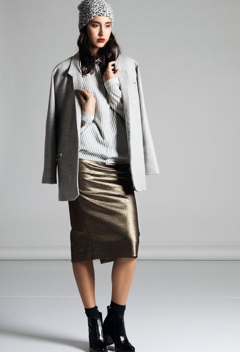 Ukoliko ste se zaljubili u neku metalik suknju midi dužine ali strahujete da nećete znati kako da je kombinujete, naša Manda Javorina ima tri predloga da rešite tu nedoumicu. Nek vas njene tri kombinacije inspirišu da budete kreativni, bilo da ste fan patika, salonki ili čizmica. Foto: