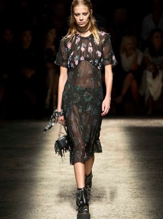Dok nam Preen by Thornton Bregazzi i Roberto Cavalli preporučuju ženstvene i sekipilne crne haljine, idelane za večernji izlazak. Coach nam za proleće donosi crni model providne haljine, ali sa cvetnim aplikacijama, a Burberry za ovu jesen preporučuje kombinaciju jednog komada od providne čipke i jednog zatvorenog modela...