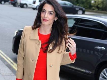 Čak i kada stilizuje klasične boje u spoju - crno i belu, Amal crvenim detalj zaokruži stajling, jer je i te kako svesna efektosti ove boje.