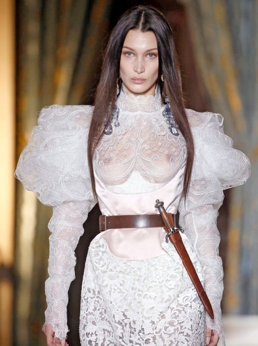 Na kraju krajeva, Vivienne Westwood prošle godine prošetala je pistom Bellu Hadid u venčanici čiji je gornji deo sačinjen od bele čipke i praktično je potpuno transparentan, nage grudi se jasno naziru, a britanska modna kraljica prognozirala je ovaj odvažan detalj kao trend za sezonu jesen-zima 2020/2021.